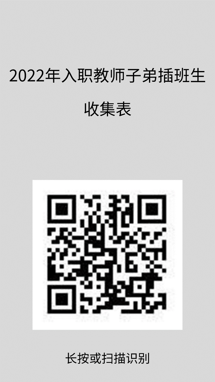 按照南開區教育局規定從即日起不再辦理六年級學生的插班工作。因此附小僅能接收當年大學各院系引進人才教職工子弟一至五年級的學生,并為其辦理插班手續。如有需要的家長,請您在8月10日前掃描下方二維碼進行登記填寫。