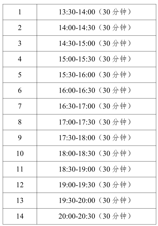 1.6月28日至8月23日,每日13:30-20:30營業(yè),每日設(shè)置十四個(gè)預(yù)約時(shí)段,每時(shí)段可預(yù)約300人(男125,女175)。