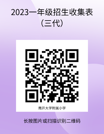 按照南開區教育局規定從即日起不再辦理六年級學生的插班工作。因此附小僅能接收當年南開大學各院(系)引進人才教職工子弟(二代)一至五年級的學生,并為其辦理插班手續。如有需要的家長,請您在8月18日前掃描下方二維碼進行登記填寫。