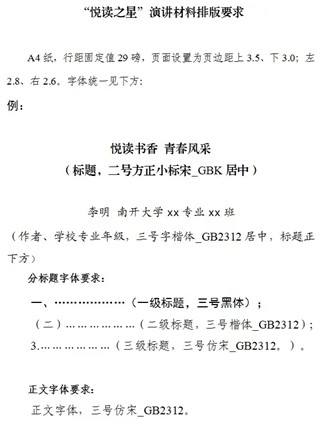 長(zhǎng)按識(shí)別下方二維碼進(jìn)入活動(dòng)頁(yè)面,填寫相關(guān)信息后,將作品上傳至活動(dòng)平臺(tái)。文字材料排版要求見附件2,視頻格式見“作品要求”部分。提交演講視頻后,還需將演講材料(格式參照附件2)發(fā)送至郵箱nkydzx@nankai.edu.cn。郵件主題請(qǐng)注明【悅讀之星】,郵件內(nèi)容寫明學(xué)號(hào)、姓名、學(xué)院和手機(jī)號(hào),以方便后期聯(lián)系。
